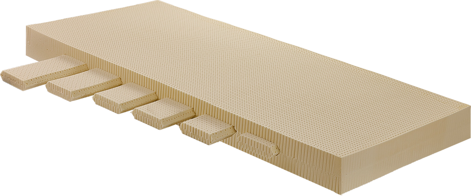 Die Latexmatratze AIR wird aus 100 % Naturlatex hergestellt. Die permanente Luftzirkulation durch die großen Luftschleusen sorgt für eine optimale Entlüftung der Matratze.